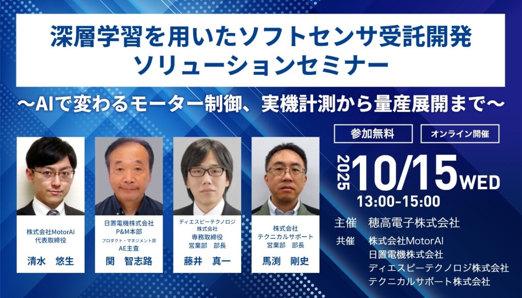 共催 | ディエスピーテクノロジ株式会社 テクニカルサポート株式会社 日置電機株式会社 株式会社MotorAI |